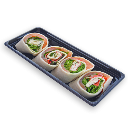 Heerlijke huisgemaakte wraps, rijkelijk gevuld met dagverse ingrediƫnten als sla, zalm en krabvlees.